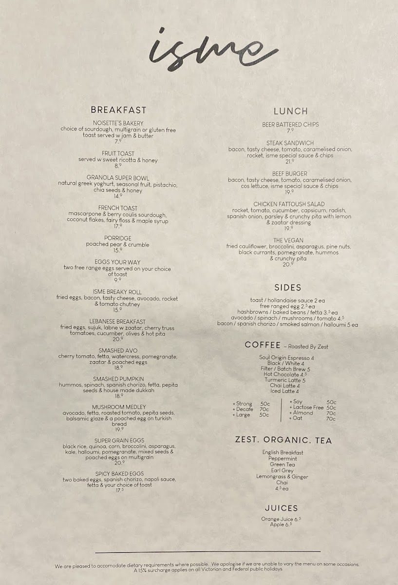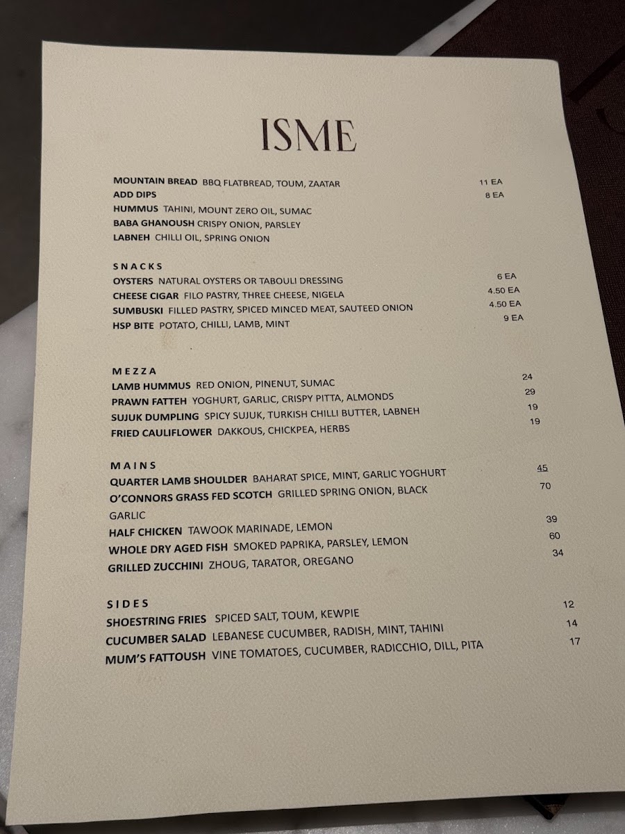 The menu at Isme Restaurant offers a thoughtful selection of Middle Eastern dishes, blending casual dining with authentic flavors and comforting touches. Whether you're stopping in for a relaxed breakfast or settling in for shared plates and drinks, the options invite you to enjoy familiar favorites alongside some unexpected delights.
